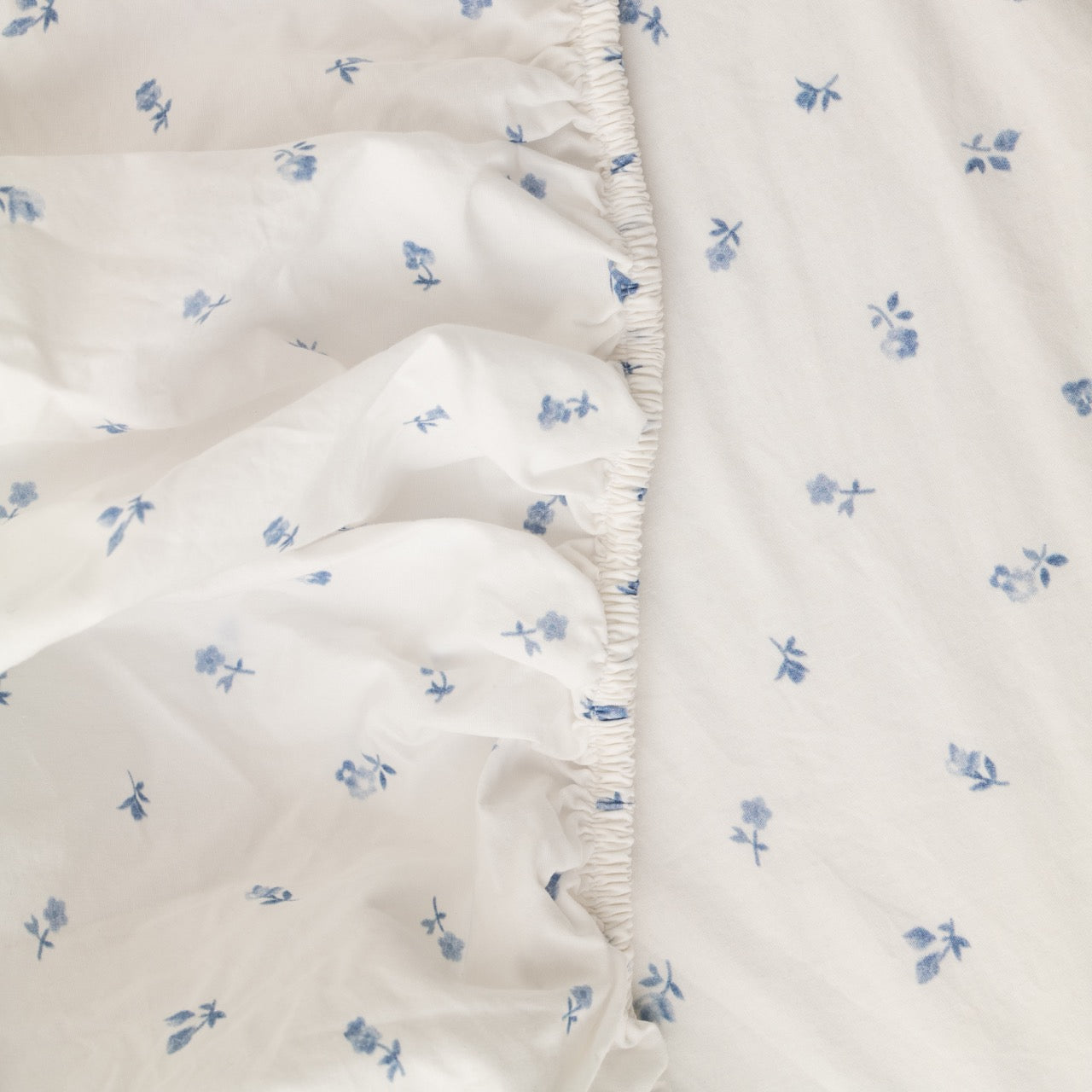 Crisp and soft to the touch, the Celeste sheet set is made with high-quality cotton with a delicate blue floral pattern.