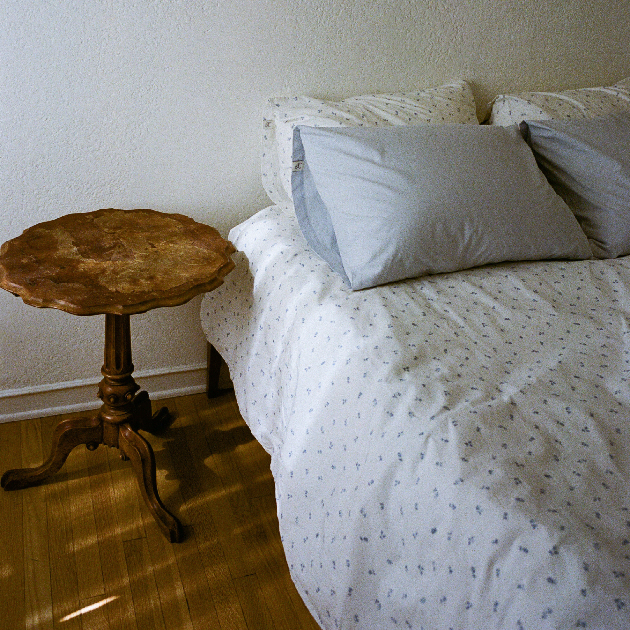 Crisp and soft to the touch, the Celeste duvet is made with high-quality cotton with a delicate blue floral pattern.